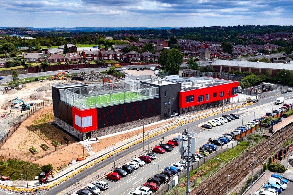 Installation of a BRoof T4 fire resistant classified rooftop synthetic grass muga More...
